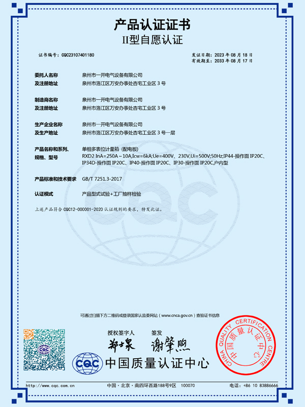 本公司產品已取得國家強制性產品認證(即CCC認證),所建立的體系已通過ISO9001質量管理體系認證,選擇本公司的產品是創造優良工程的保證